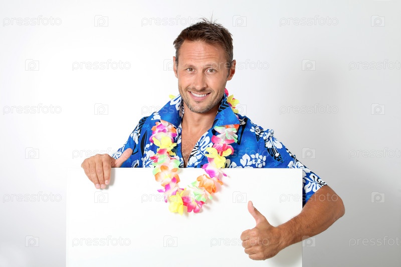 Человек с гавайской рубашке на белом фоне