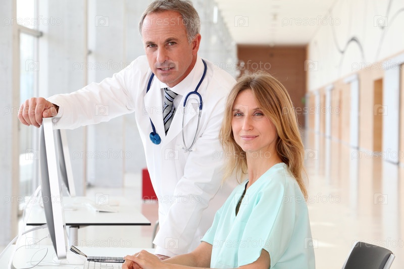 Портрет красивой медсестры и доктора