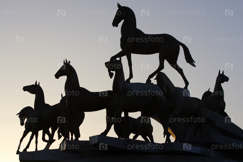 Ашгабат. Туркменистан. Памятник ахалтекинским скакунам