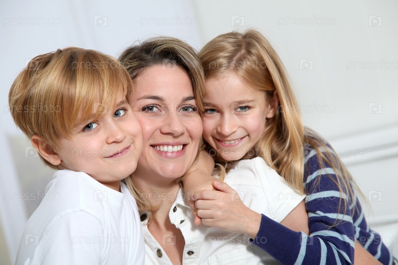 Портрет счастливой матери с двумя детьми