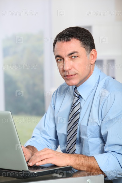 Бизнесмен, работы на ноутбуке