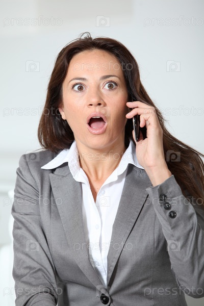 Предприниматель, разговаривает по телефону с удивлен смотреть