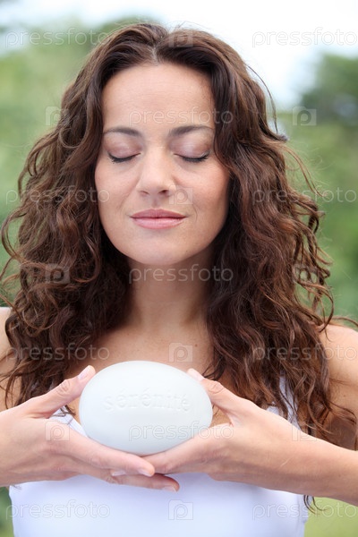 Крупным планом красивая женщина держит камень