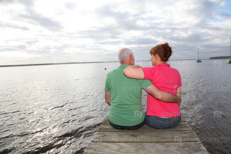 Вид сзади супружеские пары, сидя на понтон