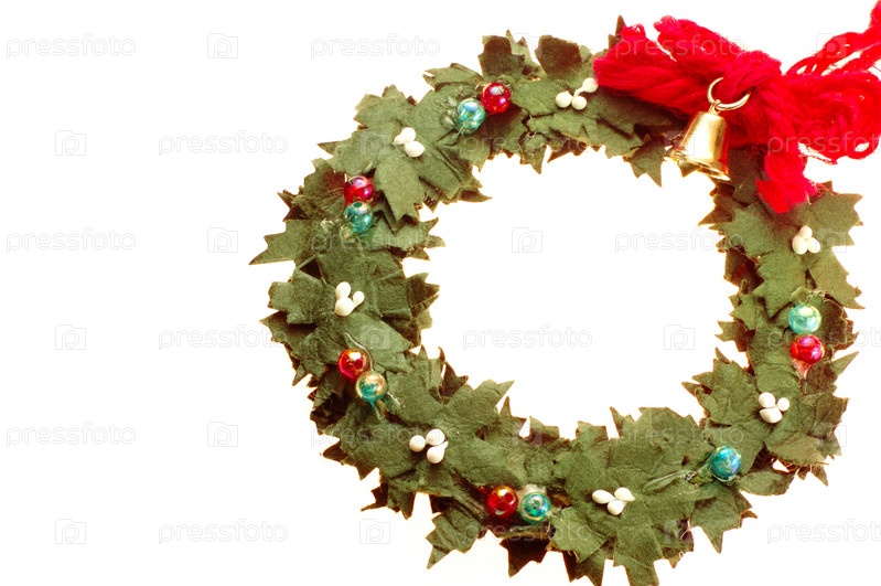 Венок украшен небольшой золотой колокольчик, изолированные на белом фоне