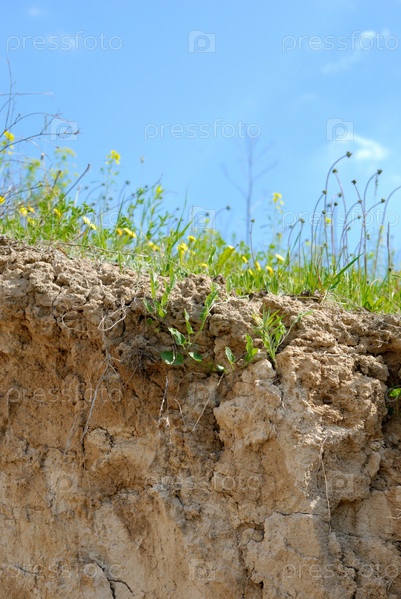 Эрозия прибрежных почв под голубое небо крупным планом выстрелил