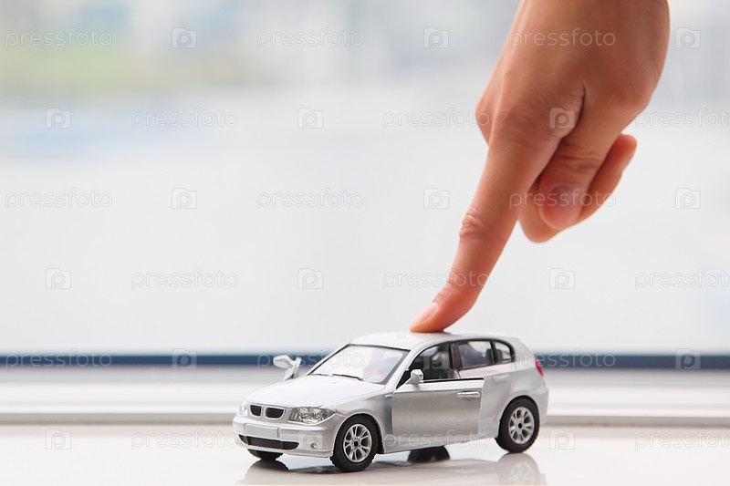 Мужской указательный палец на крыше игрушечного джипа