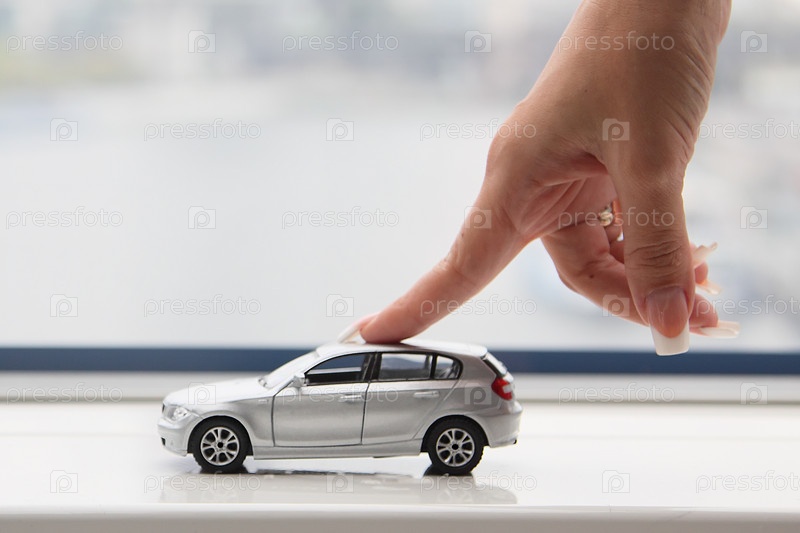 Женский указательный палец на крыше игрушечного джипа