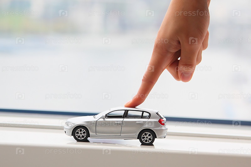 Мужской указательный палец на крыше игрушечного джипа