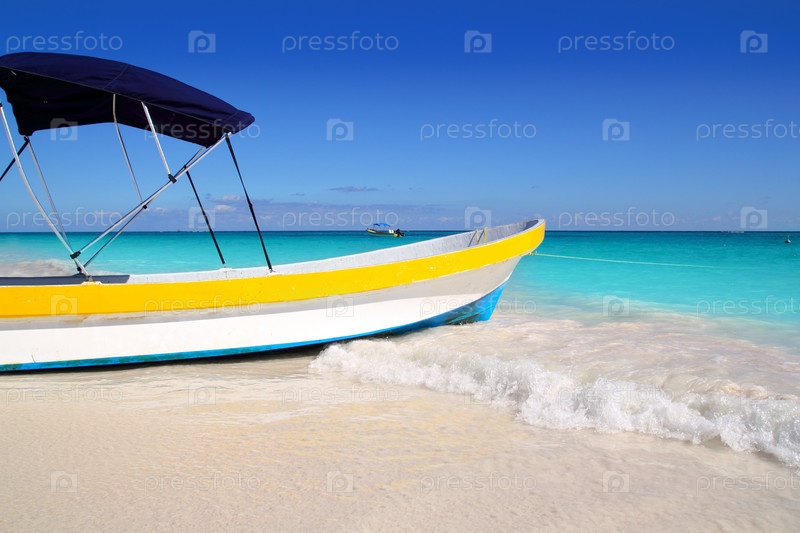 Лодка тропический пляж Карибского бирюзовой морской воды