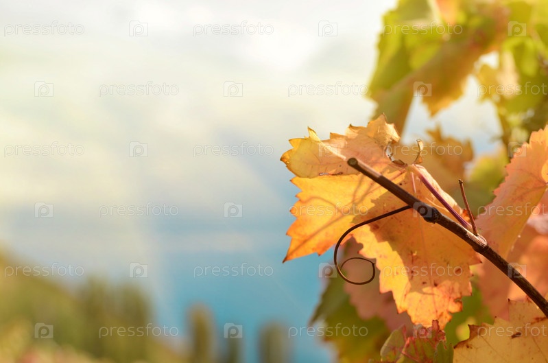 Сухие виноградные ветки и листья фоне неба