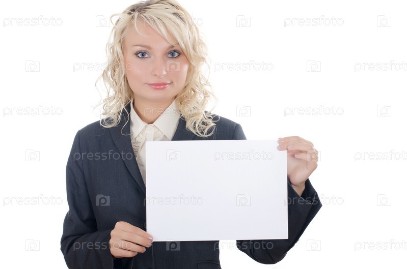 Деловая женщина держит белый лист бумаги