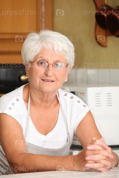 Пожилая женщина в домашней кухне