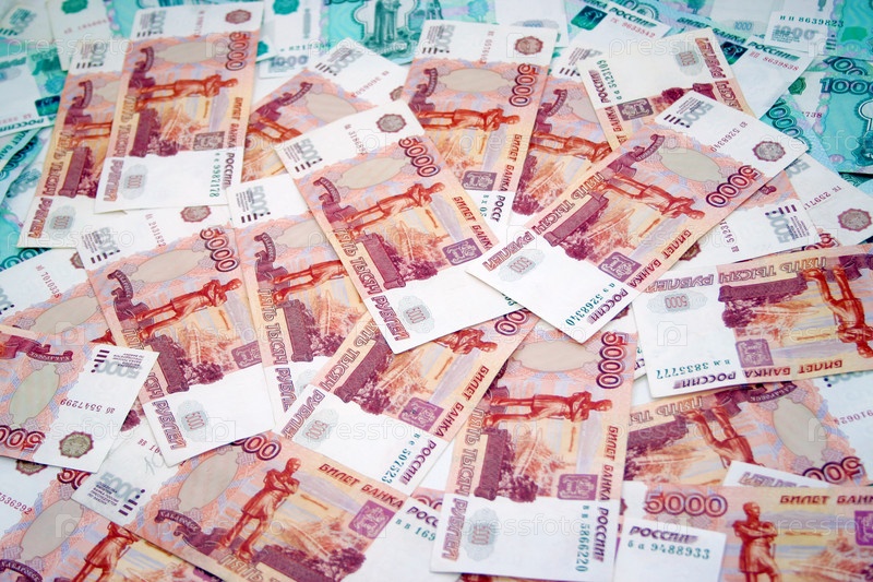 Денежные купюры РФ крупным планом