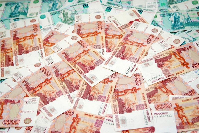 Денежные купюры РФ крупным планом
