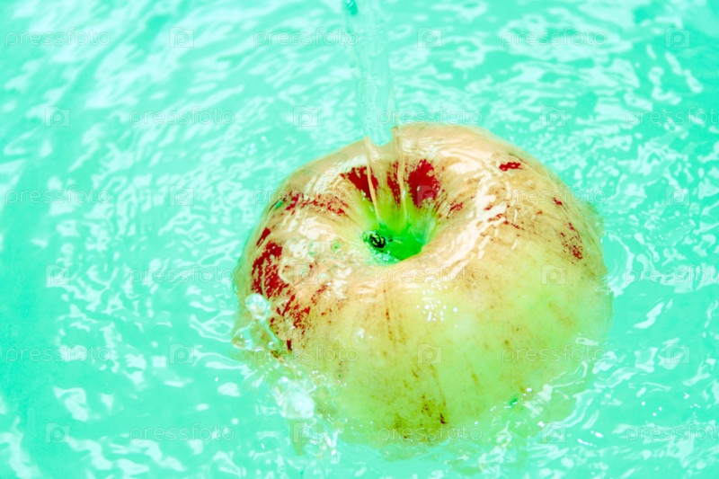 Яблоко в воде крупным планом