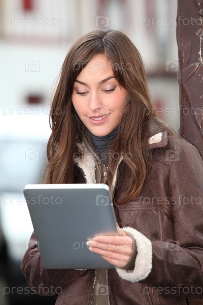 Молодая женщина, с использованием электронной площадки в городе
