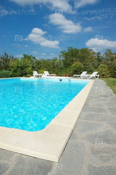 Плавательный бассейн в саду итальянской виллы, Солнечный день