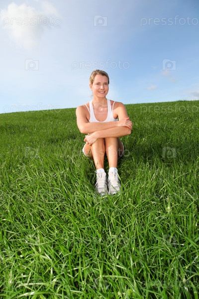 Красивая женщина, делая упражнения фитнес в природе