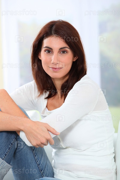 Молодая женщина на диване