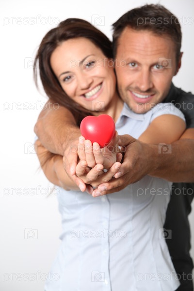 Пара на белом фоне, холдинг красных сердец