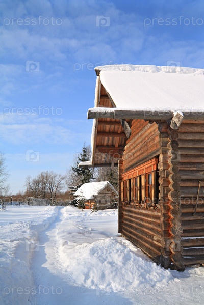 Деревянный дом среди снега
