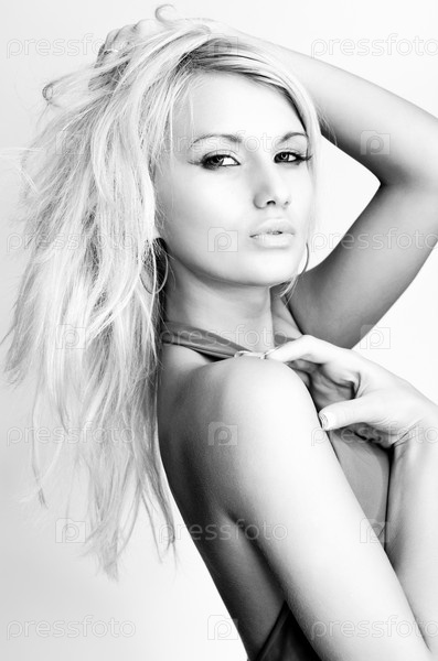 Портрет молодой женщины моды. Черный и белый