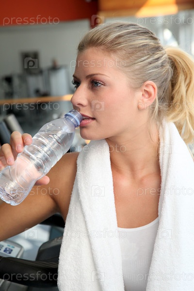 Женщина питьевой воды после занятий