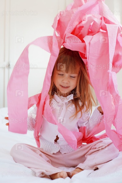 Девочка, играющая с розовой туалетной бумагой