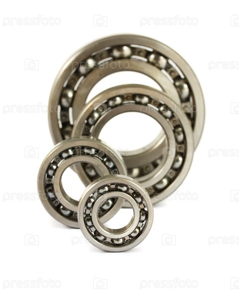 Четыре шариковых подшипника на белом фоне