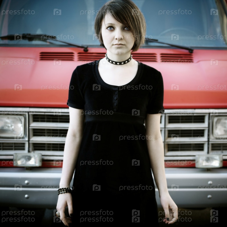 Молодая женщина на фоне красный автомобиль