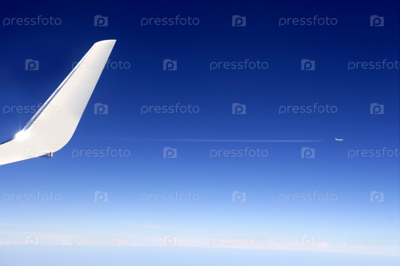 Самолет крыло деталь летать высоко вверх в глубокое синее небо