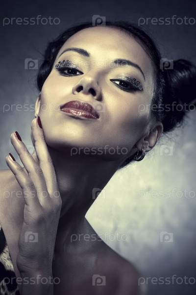 Молодая женщина студии моды портрет. Темные тонированные цвета