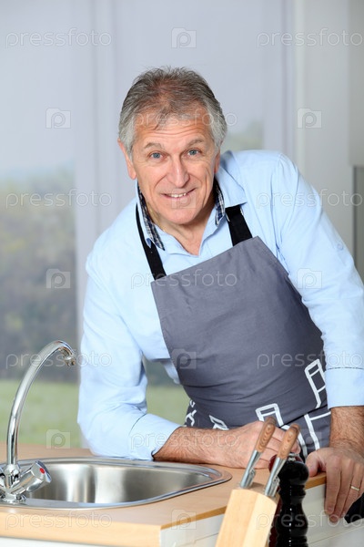 Крупным планом старший мужчина в домашней кухне