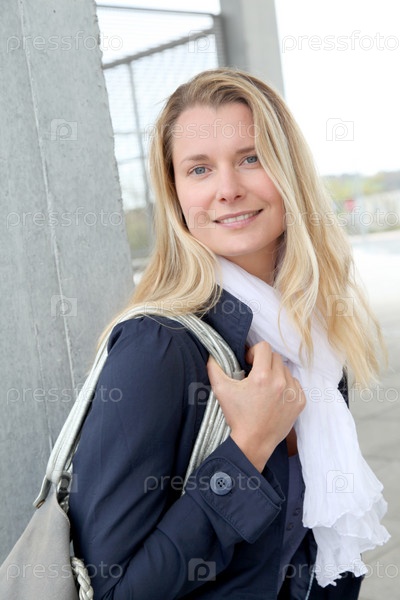 Портрет красивая блондинка женщины в городе
