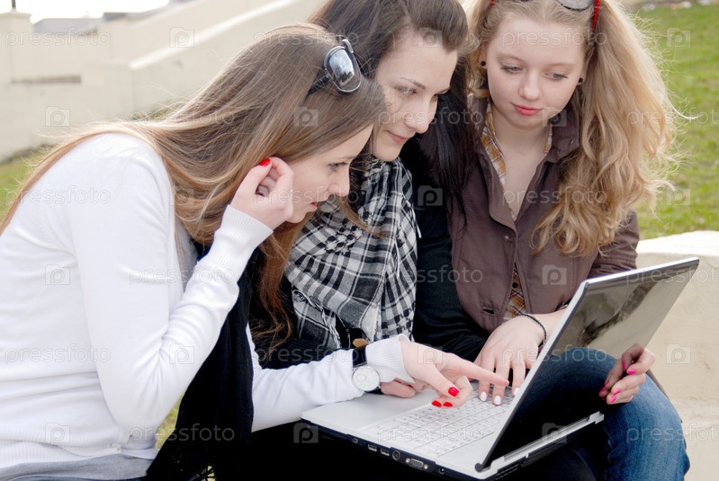 Трое подростков с ноутбуком