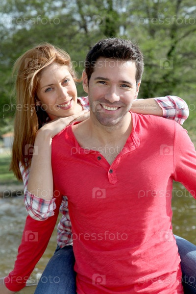 Подруга холдинг человек на спине