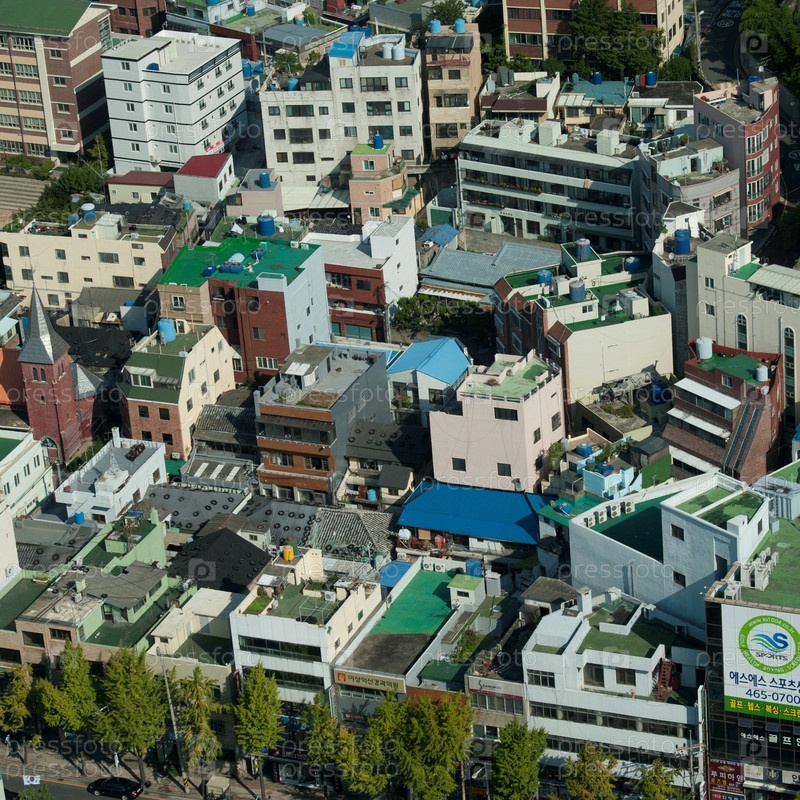 Аэрофотоснимок зданий в городе Пусан, Йоннам, Южная Корея