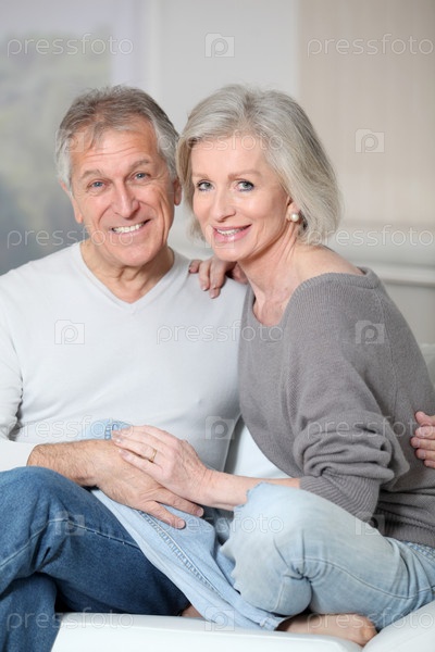 Портрет счастливой Пожилые супружеские пары, сидя в диван