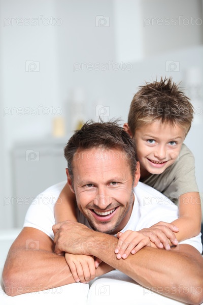 Крупным планом отца и сына на дому