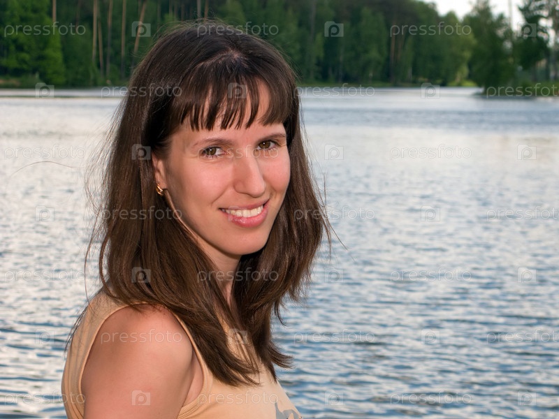Молодая красивая девушка улыбается на пляже у воды летом