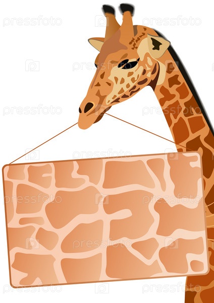 Жираф с пустой пятнистой табличкой