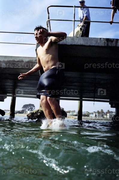 Запасов фотография молодой человек прыгает в воду