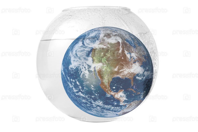 Земной шар в аквариуме на белом фоне