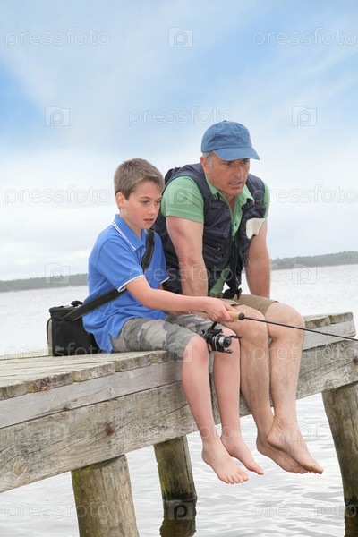 Отец и сын, рыбалка на озере