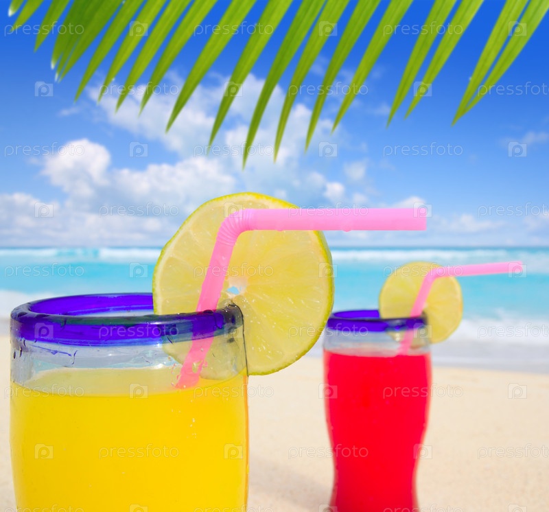 Тропические коктейли пальмовое дерево средствах бирюзовый пляж на Карибское море