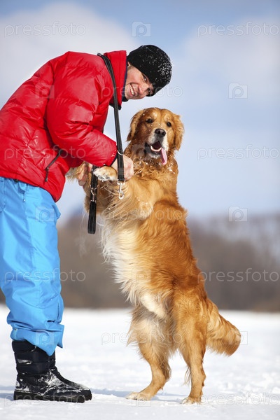 Молодой человек с собакой на открытом воздухе
