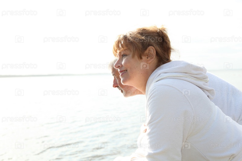 Пожилые супружеские пары в Халат, стоящий на понтон