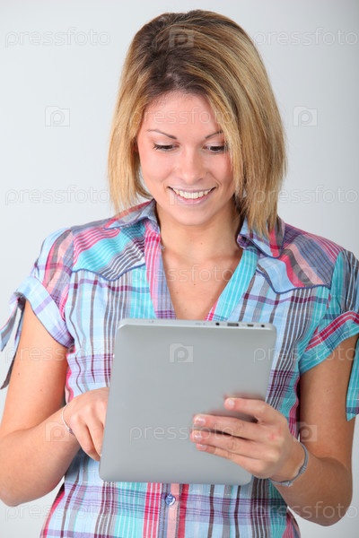 Молодая женщина с электронной площадки