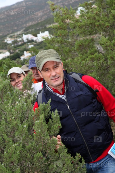 Группа людей, ходить в природный ландшафт